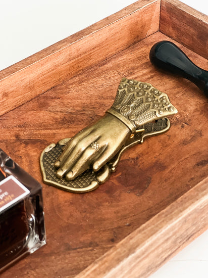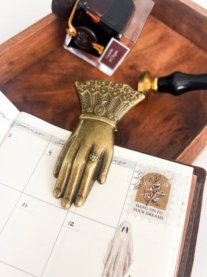 Esta mano clip de estil vintage te ayudará a mantener tu diario y/ cuaderno abierto para que puedas escribir cómodamente, ¡el complemento ideal para tus ratos de journaling!.